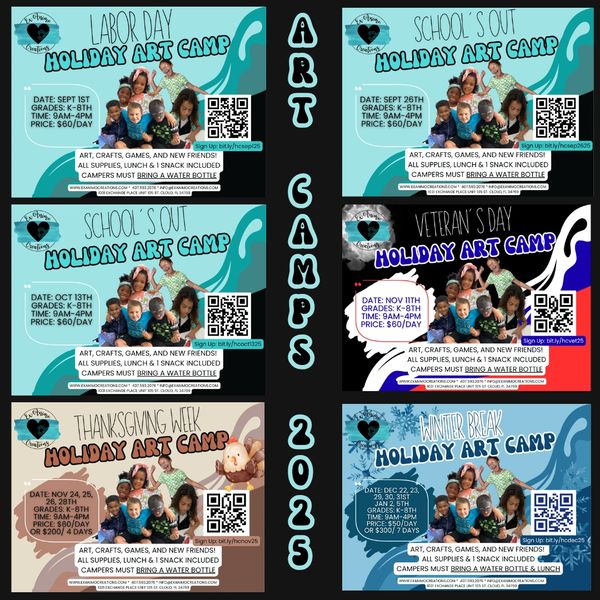 It's hard to narrow down your God-given gifts and talent into one category... So Carpe Diem... Let's do them all! We currently offer In-Studio Paint and Sips, Birthday Parties, Private Sessions, Corporate Parties Mobile Paint and Sip Parties, Saturday Art Club, Summer Camp, Private Art Lessons, Homeschool sessions and Artwork!