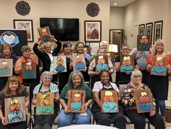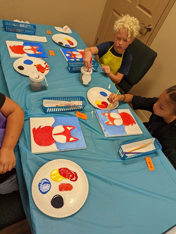 A: Each person will be given a canvas to take home when finished! We will also bring the easels, paint, paint brushes, water cups for cleaning the brushes, and blow dryers!